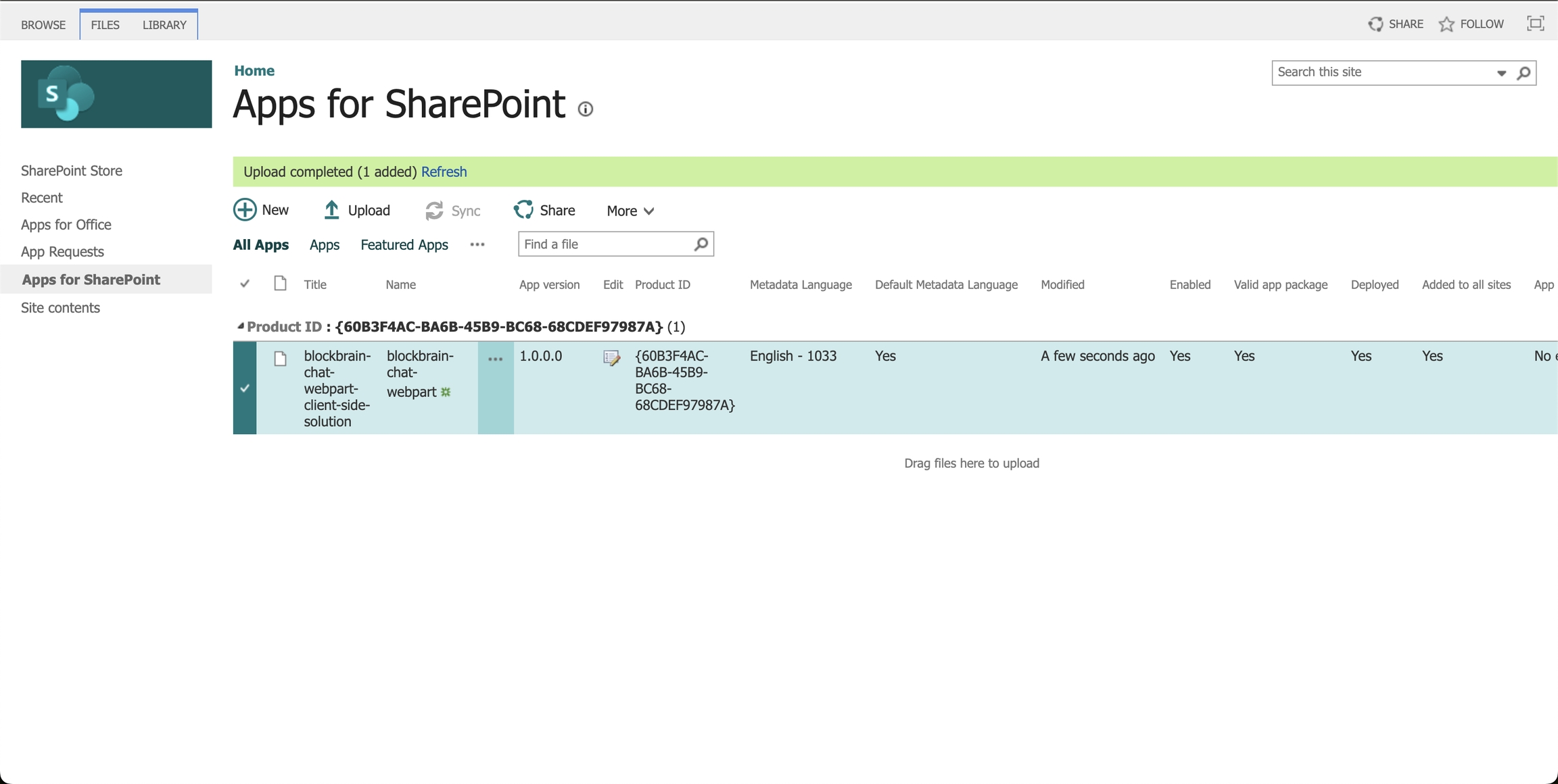 https://<your-tenant>.sharepoint.com/sites/appsDas Paket hochladen