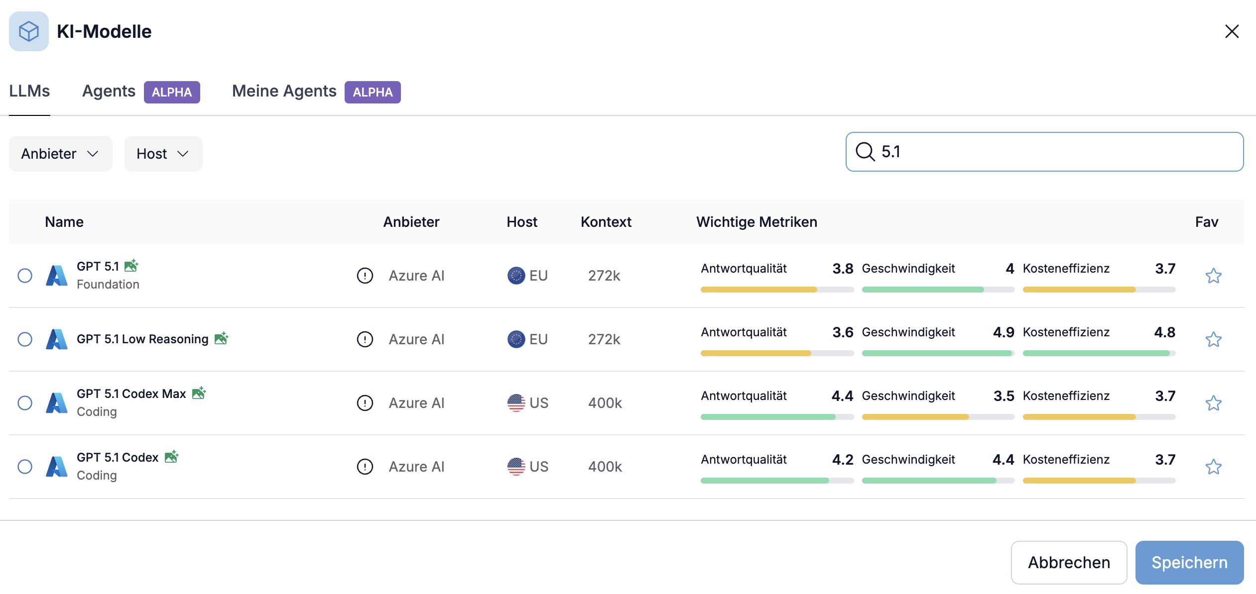 Das neue GPT 5.4 Modell ist jetzt in der LLM-Auswahl verfügbar. Dieses Modell wird auf EU-Servern gehostet und ist vollständig kompatibel mit allen Plattform-Features wie Streaming, Function Calling und Workflow-Konfigurationen.&#x20;
